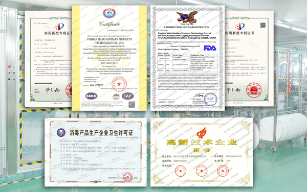 佛山嘉博擁有消毒產(chǎn)品生產(chǎn)企業(yè)衛(wèi)生許可證,多項(xiàng)專利證書,F(xiàn)DA,CE,GOTS, ISO9001,SGS等國(guó)內(nèi)外權(quán)威機(jī)構(gòu)出具的證書。